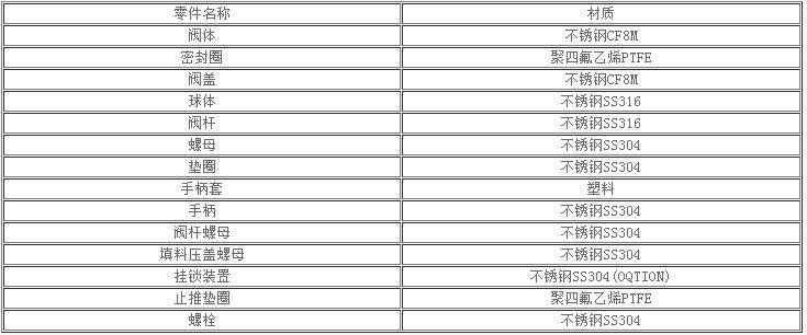 三、Q81F三片式卡箍球閥主要零件材料