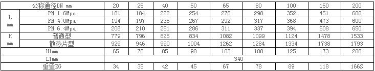 法蘭尺寸:公稱壓力PN16采用鑄鐵法蘭