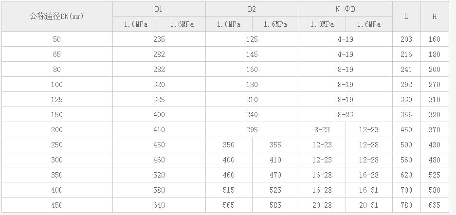 公稱通徑:DN50~600mm